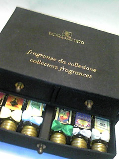 一つの花 をテーマとした香水(正確にはオーデパルファン)が 24種類あるコレクションです。 24種類集めるのに苦労しました 12種類のはよくあるのですが24種類のはなかなかなくて… 何回か買ってやっと全部揃いました ![]() ![]() 香水瓶もとても可愛いんですよ 可愛い花 の絵や女の子の絵などのラベルが貼ってあって… 瓶の首のところに小っちゃなリボン が結んであります。 香水瓶が入っているケースが これがまたお洒落で…ブック型のケースが多いのですが 私の24種類入れてあるケースは… チェスト型をしていて四つ引出しがあって その中に六つづつ入ってます。 このチェスト型の入れ物には 香水にまるで関心のない主人も フーン と感心していました ちなみに、下はブック型です。 ![]() 一番最近に買った香水。 レモンの香りのオーデコロン